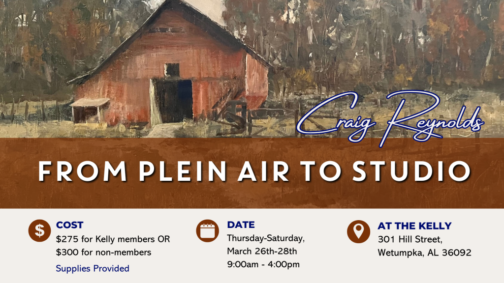You’re invited to join the Kelly Fitzpatrick Center for the Arts in Wetumpka on Friday, June 6th and June 13th from 9:00 a.m. to 3:00 p.m. for “Paint Wetumpka” – A Plein Air Event. Artists from across the River Region and beyond are welcome to come and paint the picturesque scenes of historic downtown Wetumpka and its surrounding natural beauty. Participation is FREE, and all are welcome. Each morning, artists are encouraged to check in at the Kelly Fitzpatrick Center for the Arts, where light refreshments and restrooms will be available. The Center will serve as a home base throughout the event. Mark your calendars and bring your easels to “Paint Wetumpka”—a celebration of creativity, community, and the timeless beauty of painting en plein air.