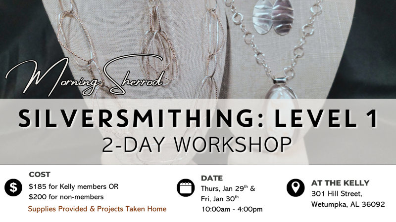 Learn the basics of silversmithing from Morning Sherrod, who has 16 years of experience! Learn how to use a butane hand torch and flex shaft, and pick up new skills such as paillon, sweat and pick soldering, cutting with shears, hammering, texturing, stamping, and bezel stone setting. Don’t know what a patina is or what any of these skills are? Or maybe you dabbled before and want to shake off the dust? Then this is the class for you!