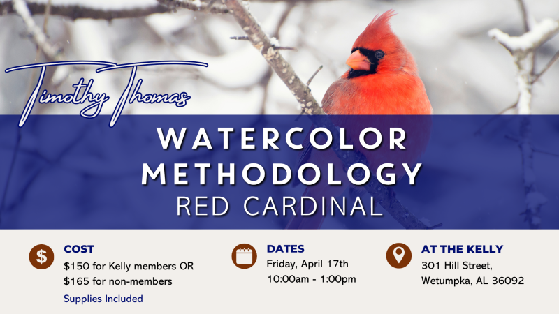 Taught by Tim Thomas, this watercolor methodology class centers on painting a red bird—most often a cardinal—as a study in color layering, perception, and visual sequencing. This class challenges students to shift how they see color by learning to identify colors as layered relationships rather than single values, and by painting the first color they perceive last. Through transparent watercolor glazing, students build complex reds and surrounding hues that evolve as successive layers are applied—much like stacking panes of glass, where each layer subtly alters the colors beneath it.
