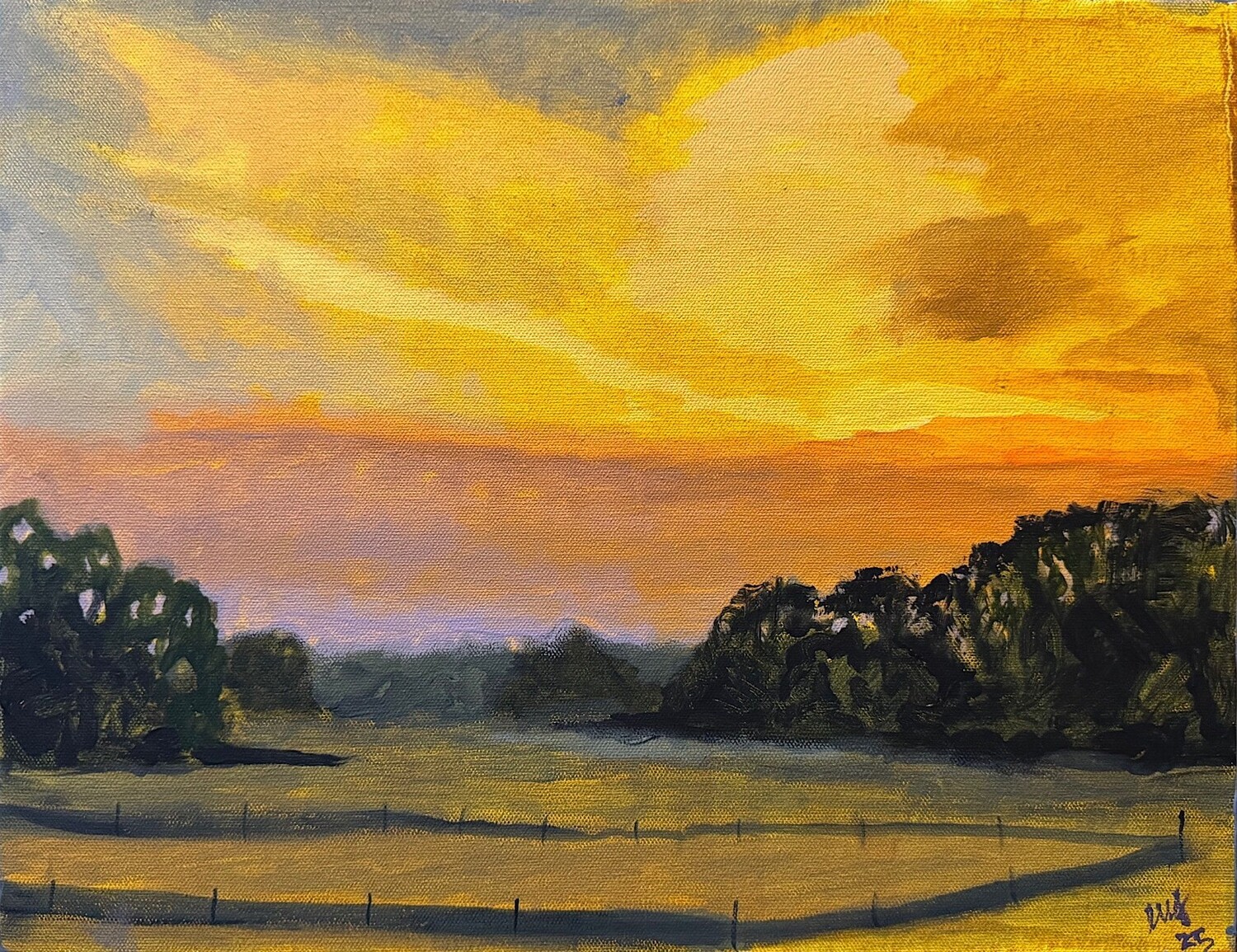 This painting is inspired by the calm clarity that comes with early morning. The glowing sky and softened fields are meant to evoke a sense of hope and quiet anticipation. “Bright & Early” is about that gentle transition between darkness and possibility.