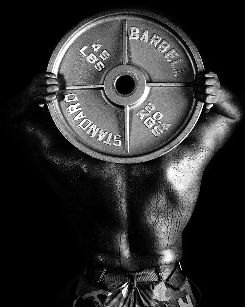 “This powerful image of a muscular Black man, a 45 lb weight plate held behind his head, stands as a tribute to the unshakable strength, resilience, and spirit of Black men everywhere — carrying weight the world may never fully see, yet rising with grace, power, and unwavering determination. It is a reflection of endurance, of dignity, of the quiet courage to push forward, overcome, and prevail.”