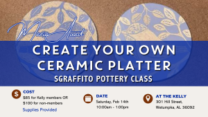 Come and get creative with clay! No experience is needed. In this 3-hour workshop, you’ll design and decorate your ceramic platter using the sgraffito technique, a fun method of carving through colored
